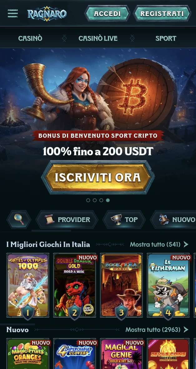 La nostra piattaforma mobile è progettata per offrirti lo stesso conto, la stessa cassa e lo stesso catalogo giochi che vedi su desktop. Ragnaro Casino supporta circa 10.000 giochi tra Slot, Live Casino, Giochi Jackpot, Giochi da Tavolo, Giochi Istantanei, Sportsbook, Esport e Sport Virtuali. Ragnaro funziona anche in italiano, con EUR disponibile di default, così puoi leggere regole e termini dei bonus senza andare a intuito.